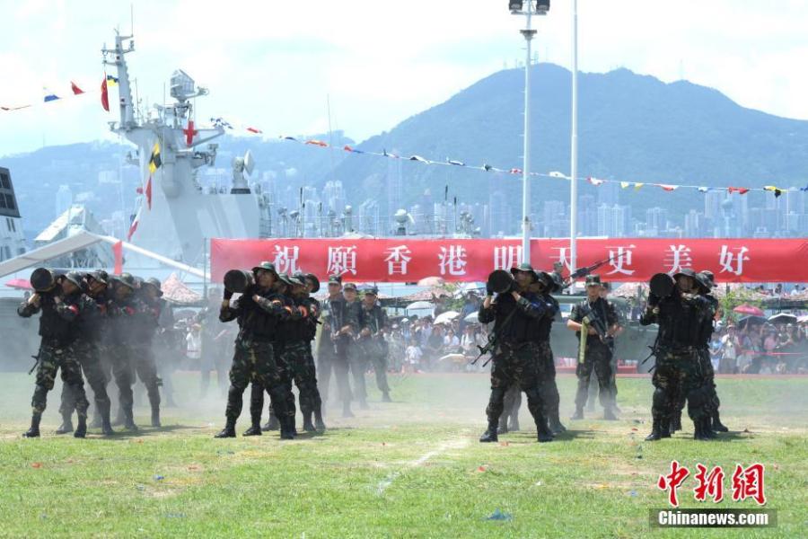 PLA forces stationed in Hong Kong open a base to the public to mark the 21st anniversary of Hong Kong's return to China, July 1, 2018. The Open Day activities included a flag raising ceremony, a military band performance, and a show of combat skills. The PLA Hong Kong garrison has been responsible for the defense of Hong Kong since its return to the motherland in 1997. (Photo: China News Service/Li Zhihua)