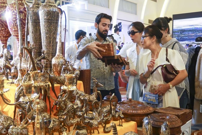 More than 200 enterprises from 40 countries and regions along the Belt and Road are showcasing their products and services, including food, cosmetics, handicraft, jewelry, clothes, and tourism products at the expo.