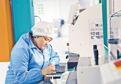 An employee is working at a workshop at the Hisense Industrial Park in South Africa. (Photo by Guan Kejiang from People’s Daily)