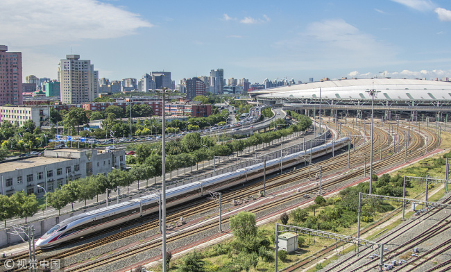 A Beijing-Tianjin high-speed intercity train departs Beijing South Railway Station on Aug. 22, 2017. [File Photo: VCG]