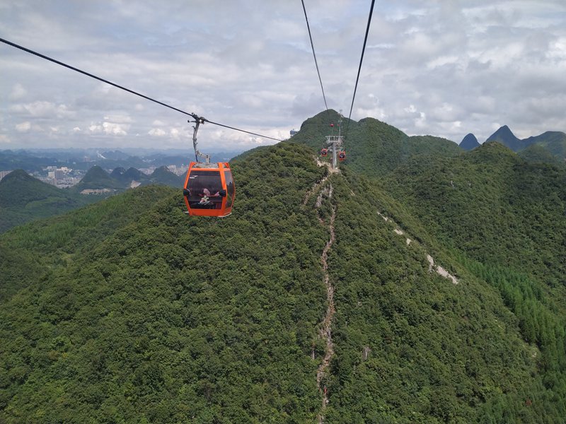 Thanks to an investment of 937 million yuan, the 9.91 km cableway runs from nearby Liupanshui University through the Minghu National Wetland Park, Meihua Mountain International Ski Resort and ends in Gaolu village, the highest point on the mountain.