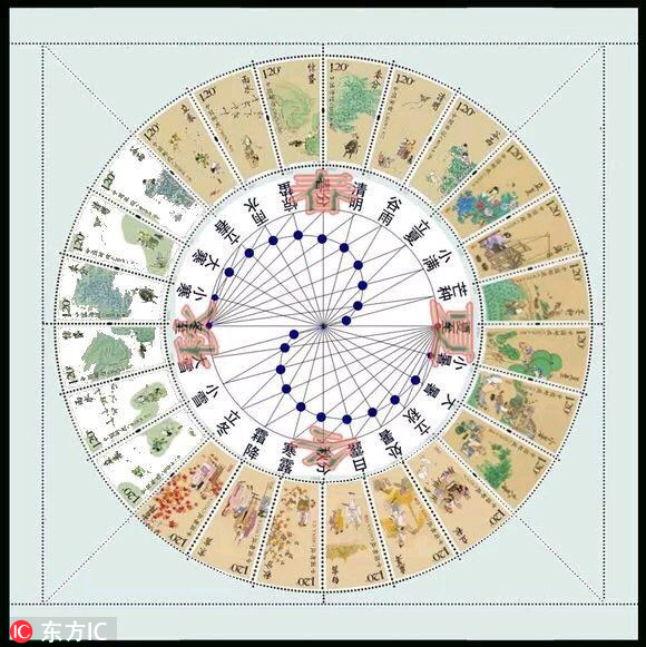 Photo shows special stamps featuring China’s 24 solar terms, to be issued by China Post on August 7, 2018. The special set consists of six 1.2 yuan (around $0.18) stamps, each of which displays a picture themed on one of the 24 solar terms.