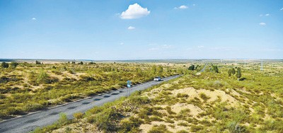 Thanks to years of efforts on desertification control, green plants now prosper alongside a road running through Kubuqi desert in Hangjin County, Erdos, Inner Mongolia Autonomous Region. Photo by Wu Yong from People’s Daily