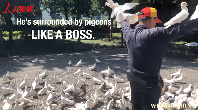 "I've been training pigeons for over a decade. They enjoy my company and I enjoy theirs. I do this to promote the idea of animal protection and let people know how important it is for us to maintain a harmonious relationship with nature." said Xu.