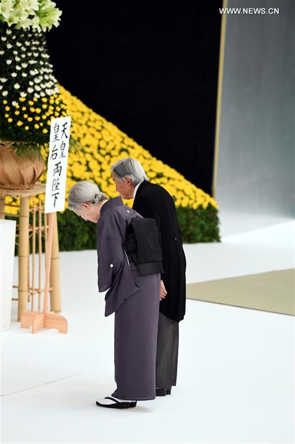 Japanese Emperor Akihito and Empress Michiko attend the ceremony marking the 73rd anniversary of Japan's unconditional surrender in World War II in Tokyo, Japan, Aug. 15, 2018. (Xinhua/Ma Ping)