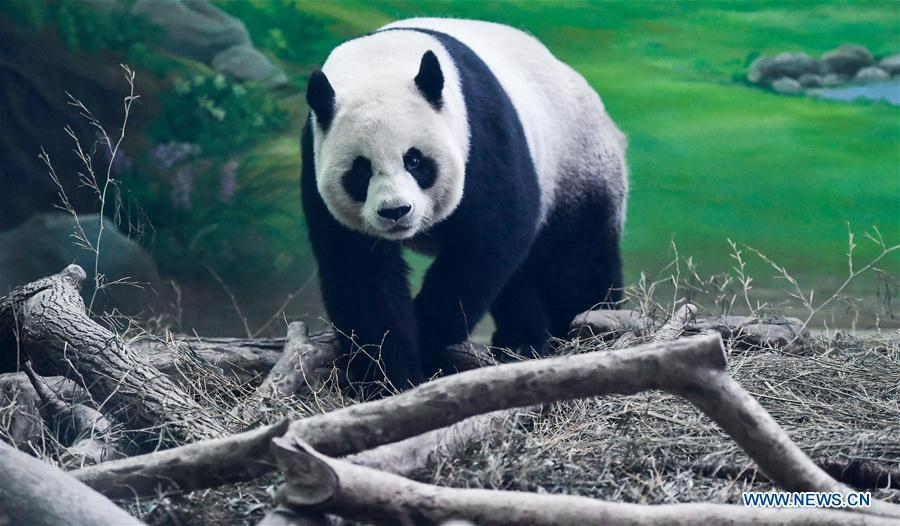 Photo taken on Aug. 30, 2018 shows giant panda Yuan Yuan at Taipei Zoo in Taipei, southeast China's Taiwan, Aug. 30, 2018. Born two days later than Yuan Yuan in 2004, giant panda Tuan Tuan also celebrated its 14th birthday together with Yuan Yuan on Thursday. Yuan Yuan and Tuan Tuan were given as a goodwill gift to Taiwan by the Chinese mainland. (Xinhua/Xue Yubin)