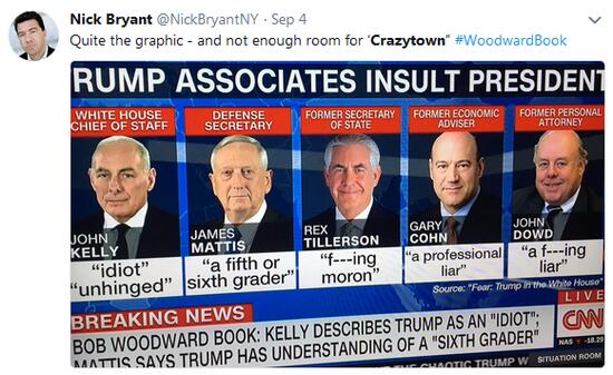 “Fear: Trump in the White House,” the upcoming book about US President Donald Trump by Bob Woodward, one of reporters who broke the Watergate story, has made headlines for pulling back the curtain on a White House that appears to be having a straight-up meltdown.