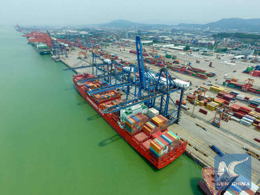 Photo taken on May 18, 2017 by a drone shows the Haicang port area in Xiamen, southeast China's Fujian Province. (Xinhua/Jiang Kehong)