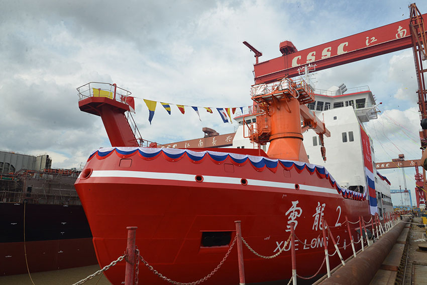 Photo shows China's first domestically-built polar research vessel and icebreaker "Xuelong 2" in Shanghai, east China, Sept. 10, 2018. "Xuelong 2" was launched on Monday in Shanghai. (People.cn/Photo)