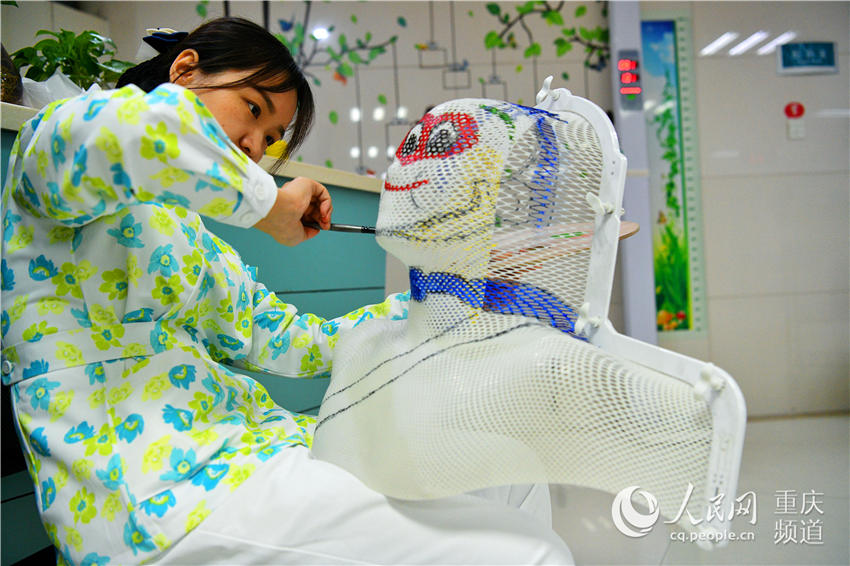 A nurse named Wang Zhenjie decided, on a whim, to paint cartoon characters onto the white head molds. She bought paints and downloaded some pictures from the Internet, and then spent two hours completing the first cartoon head.