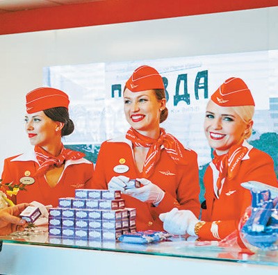 Russian staff  members working at the exhibition booth outside the venue of the Eastern Economic Forum, Sept. 11, 2018. (Photo by Li Hao from People’s Daily)