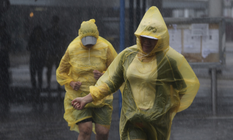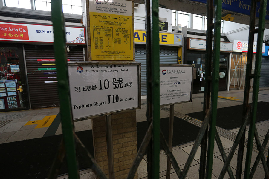 The No 10 typhoon warning is raised in Hong Kong Sunday morning. [Photo by Edmond Tang / China Daily ]