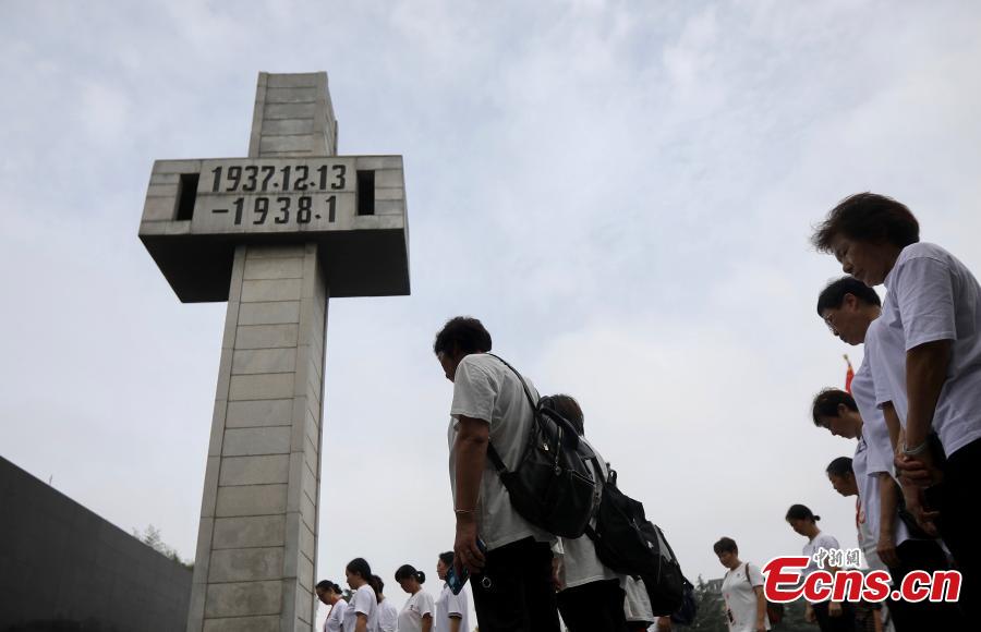 Visitors pause to mourn the deceased in silence at the Memorial Hall of the Victims in Nanjing Massacre by Japanese Invaders in Nanjing City, Jiangsu Province, Sept. 18, 2018. On September 18, 1931, the Japanese Kwantung Army stationed in northeast China destroyed a section of the railway near Liutiaohu and then falsely accused the Chinese military of causing the explosion. Using this as a pretext, the Japanese then bombarded Shenyang and began invasion of northeast China. (Photo: China News Service/Yang Bo)