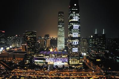 The buildings, including the 330-meter-tall China World Trade Center Tower III, the Palace shopping mall, and the Bloomage Live in Wukesong, are all involved in the light show with the theme of “I Love You, China.”