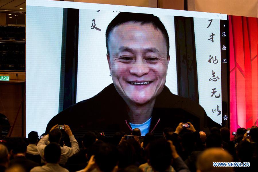 Jack Ma, founder of China's e-commerce giant Alibaba, speaks to audience via video call during the China Conference organized by South China Morning Post in the Malaysia's capital Kuala Lumpur, Oct. 10, 2018. The conference brought together business, academic and political leaders to discuss cooperation between China and Southeast Asia on politics, economy, technology and how to tap opportunities of the Belt and Road Initiative, among others. (Xinhua/Zhu Wei)