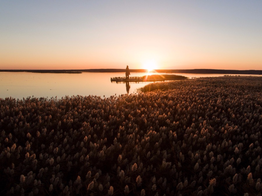 Photo taken on Oct 12, 2018 shows birds flying on the surface of Juyan Lake in Ejina Banner, North China's Inner Mongolia autonomous region.[Photo/Xinhua]