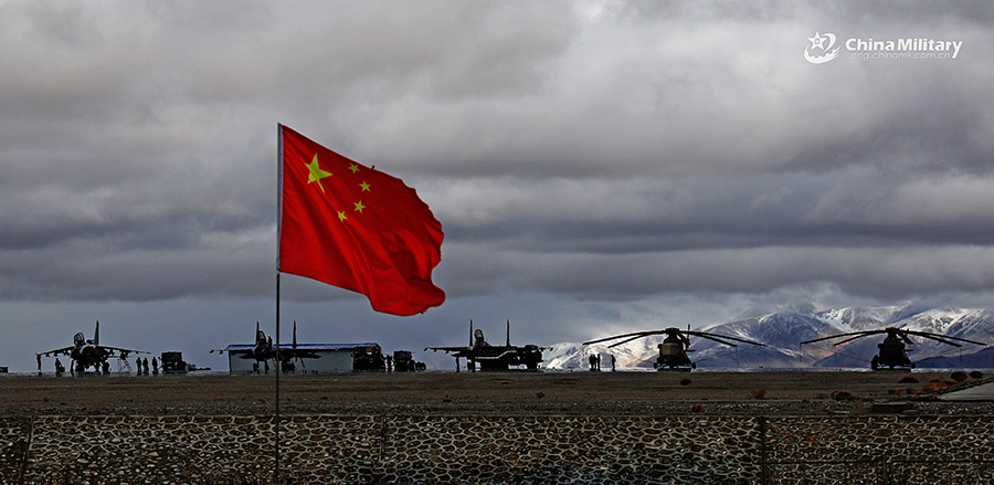 Maintenance men assigned to the air force under the PLA Western Theater Command perform pre-flight procedures on multi-type aircrafts prior to a flight training exercise in an undisclosed plateau area on October 18, 2018. (eng.chinamil.com.cn/Photo by Liu Yinghua)