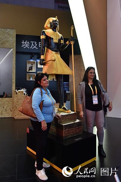 With the glistening statue of Tutankhamun, awe-inspiring seats of Pharaoh ancient Egypt, beautiful lamps with delicate carvings, and fine accessories made of alabaster, the Egypt pavilion enjoys popularity at the first CIIE.