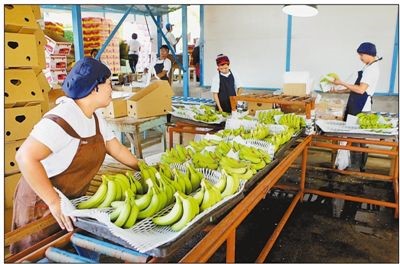 Workers are packaging bananas at a plantation in Davao del Norte, the Philippines. Bananas are the star products of the Philippines’ export, whose export volume has been ranking the first among the country’s agricultural products for years. China is its second largest destination of bananas, consuming a quarter of the total export volume. Photo by Xinhua News Agency