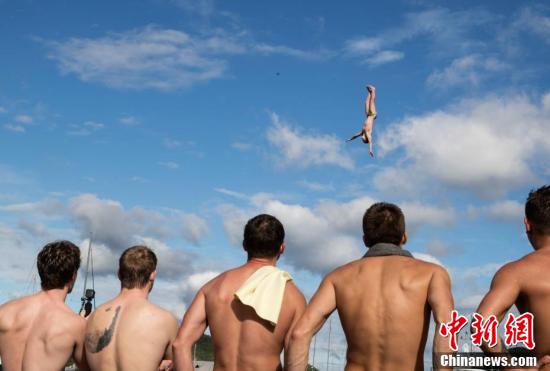 On November 28, the 2018 Sanya International Extreme Diving Masters Competition closed at the Sanya Serenity Marina, Hainan. Some of the world's best cliff divers from countries including Germany, Ukraine, Russia and Belarus took part, providing the audience with an exciting competition to watch. After three rounds, Russian diver Fedotov Nikita won the contest, with Belarusian diver Viktar Maslouski and Ukrainian diver Kolesnikov Viacheslav winning second and the third place. (Photo/ Liu Guanguan)