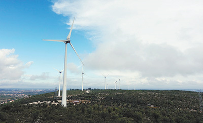The photo shows a set of electric generator of Parque Eoloco de Bairro wind farm, a power plant co-constructed by Energias de Portugal (EDP) and China Three Gorges in Portugal. (Photo by Feng Xuejun from People’s Daily)