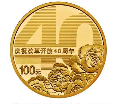 The gold coin containing 8 grams of pure gold is 22mm in diameter, with the denomination of 100 yuan. Its back pattern is a combination of the digital "40" shape and peony flowers, and the words "celebration of the 40th anniversary of reform and opening-up". The gold coins will be issued with the largest distribution of 20,000.
