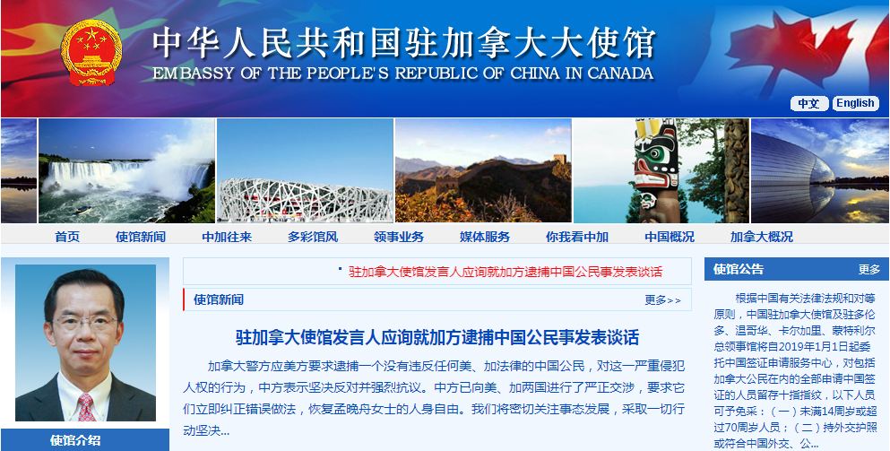 The Chinese embassy in Canada on Wednesday voiced its "firm opposition" to the reported arrest of Meng Wanzhou, chief financial officer of China's Huawei Technologies.