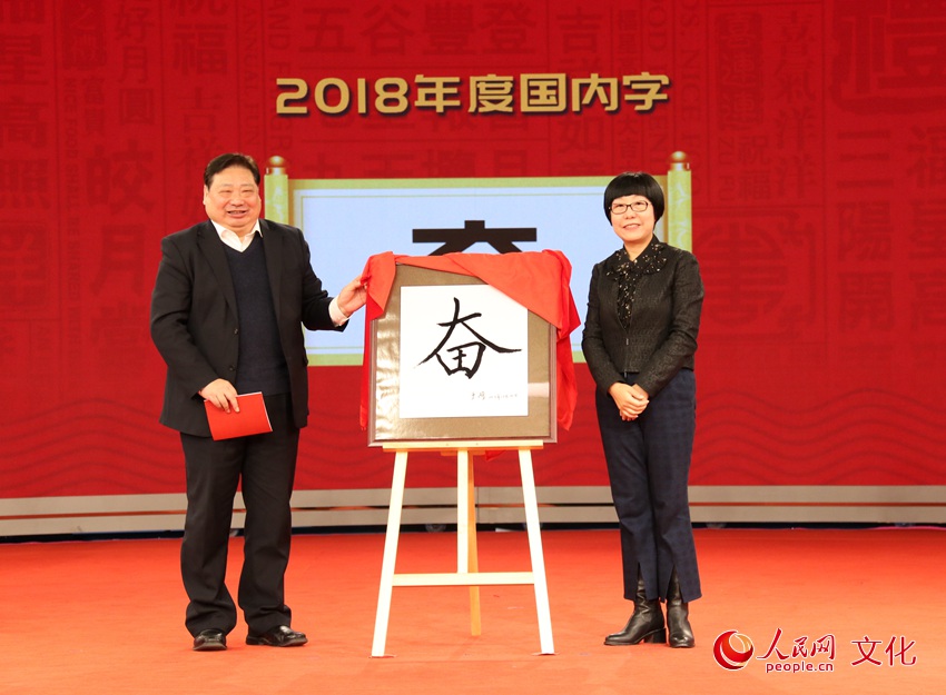"Striving" is revealed as the 2018 Chinese Character of the Year at a ceremony on December 20, 2018. (Photo: people.cn)