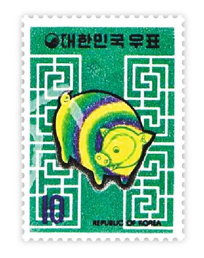 Early in 1970, South Korea took the lead in issuing such types of stamps. Korea Post issued a set of two stamps to welcome the year of the pig in 1971, with one featuring a seven-colored clay pig in a green background.