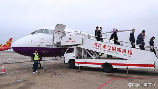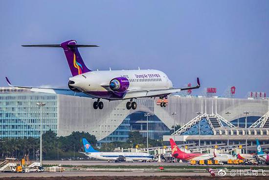 An ARJ21-700 aircraft took off from Haikou Meilan International Airport and landed in the airport after a two-and-half-hour flight, showcasing its operational capacity in the tropical marine climate, according to the Shanghai-based Commercial Aircraft Corp. of China (COMAC), its producer.