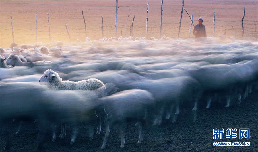 A herdsman drives sheep into the sheepfold at the Saihanba grassland in Chengde in north China's Hebei province, Sept. 28, 2018. In 2018, photographers used their equipment to capture the beauty of China throughout the four seasons all around the country. (Photo/Xinhua)
