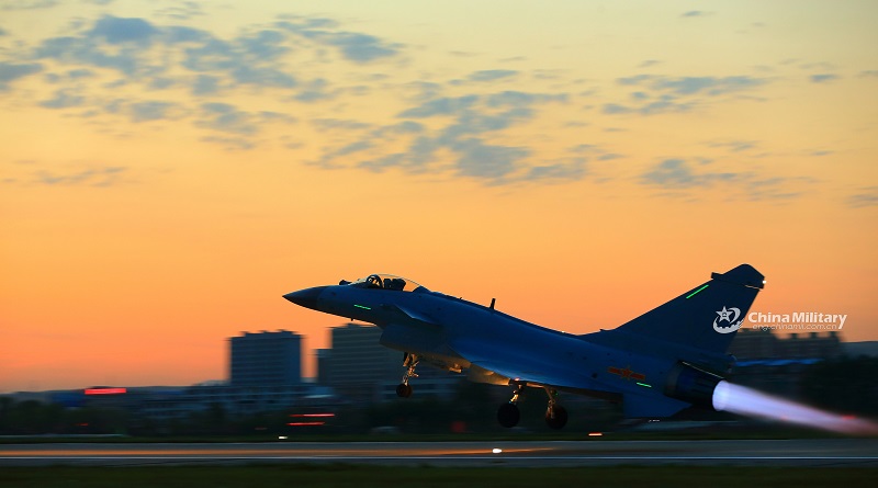 A J-10 fighter jet attached to an aviation brigade of the air force under the PLA Northern Theater Command takes off for a sortie during a recent flight training exercise. (eng.chinamil.com.cn/Photo by Xue Xiaoling)
