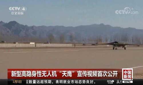 A video featuring China's flying saucer-like stealth drone, the Sky Hawk, was shown for the first time on China Central Television (CCTV) on Saturday, with leading military experts saying the technologies mastered by Chinese developers will allow the drone to fly faster, farther and avoid detection.