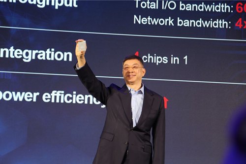 William Xu, board director and chief marketing officer of Huawei, shows the new CPU chipset to the audience. Photo: Chen Qingqing/GT