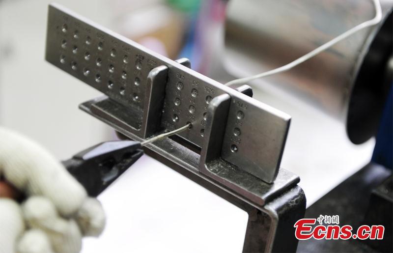 Artisans use silver thread to make crafts in Chengdu City, Southwest China's Sichuan Province. The craft dates back to the Song Dynasty (960-1279) and involves time-consuming, elaborate steps to pull a one-meter silver piece into a 1000-meter thin thread, which is then used to make all kinds of handmade works. In 2008, the craft was included as a national intangible cultural heritage. (Photo: China News Service/Zhong Xin)