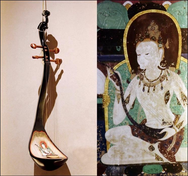A four-stringed instrument is seen in a mural in the No 465 Cave of the Mogao Grottoes. (Photo/chinadaily.com.cn)