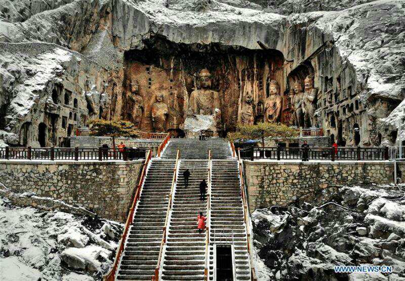 Snow-covered Longmen Grottoes in Luoyang, C China's Henan (14)