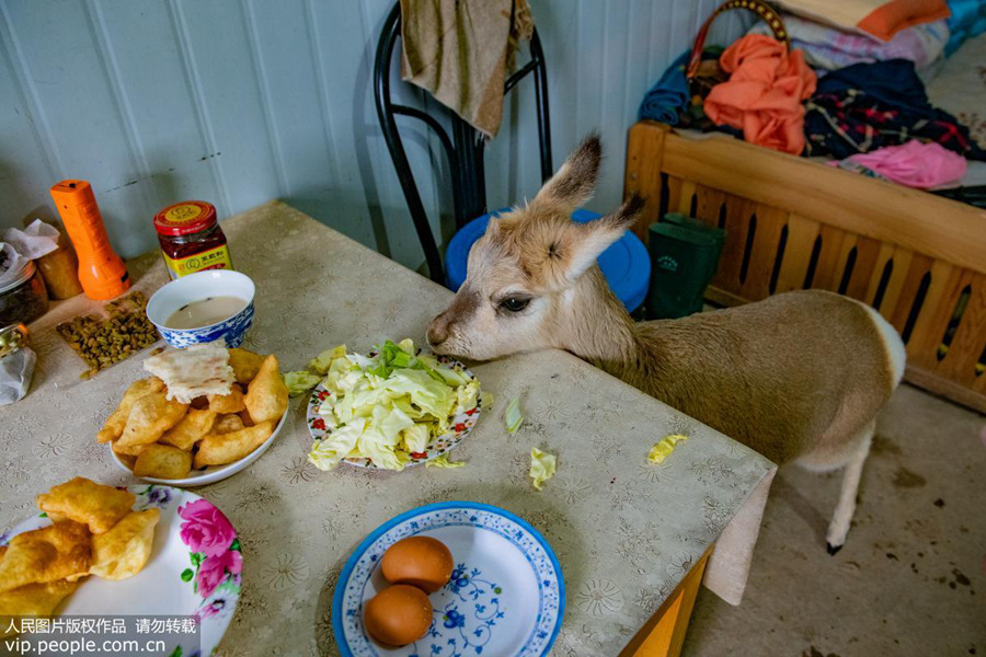 A rescued Tibetan gazelle in Robow's house. (vip.people.com.cn/Song Linji)