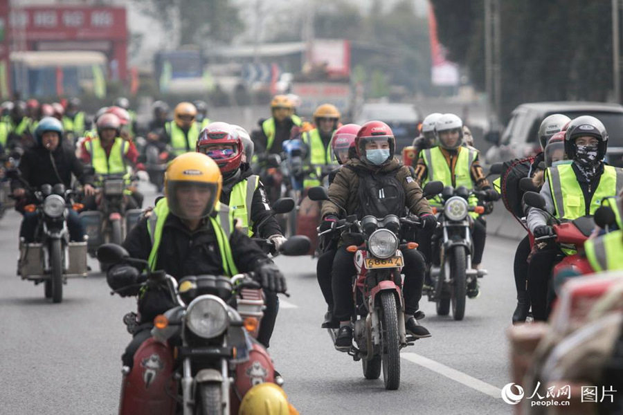 Migrant workers leave from Zhaoqing, Guangdong for home.