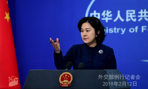 Foreign Ministry Spokesperson Hua Chunying holds a press conference in Beijing on Tuesday, February 12, 2019. [Photo: fmprc.gov.cn]