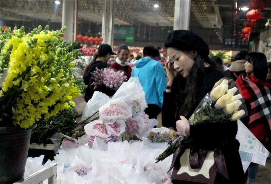 Cheng Xingfei, a retailer, bought 1,000 bundles of flowers from the market this year and said prices were up about 2 percent on average from Valentine's Day last year. A single rose can sell for up to 8 yuan ($1.18).