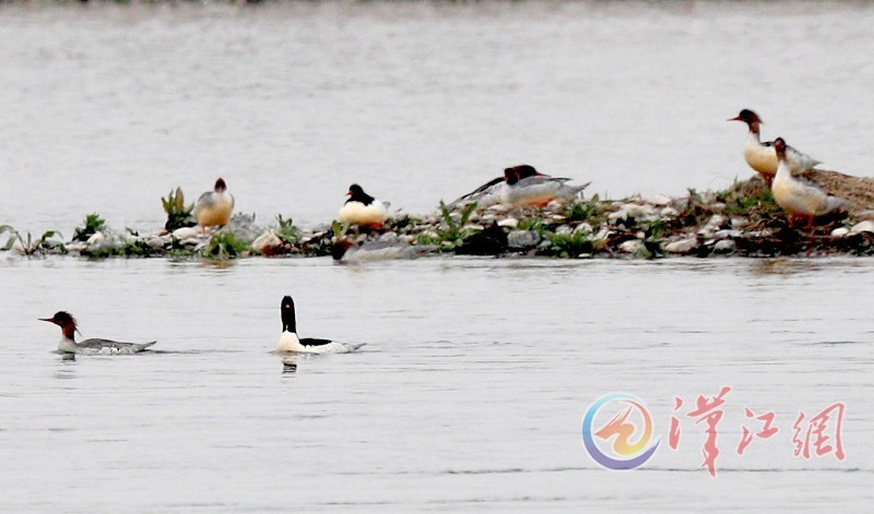 On February 17, the Chinese merganser played in the Gucheng Hanjiang National Wetland Park.