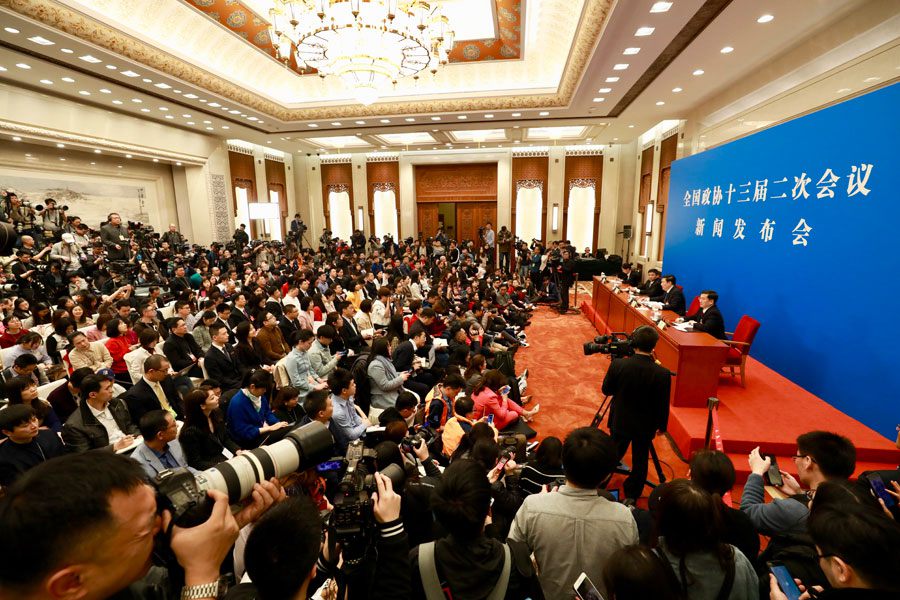 The National Committee of the Chinese People's Political Consultative Conference holds a news conference on March 2, 2019. (Photo by Zhu Xingxin/chinadaily.com.cn)
