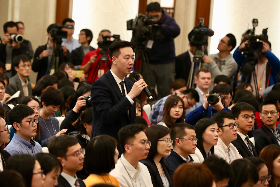 China Daily journalist asks questions at the news conference on the second sesssion of the 13th CPPCC National Committee on March 2, 2019. (Photo by Zhu Xingxin/chinadaily.com.cn)