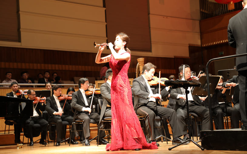 The So-na performer Liu Wenwen and the Guangzhou Symphony Orchestra played the Concerto “Hundred Birds and Phoenix” at 2019 Tandun New Year’s Concert (Photo: Fang Yingxin, People’s Daily)