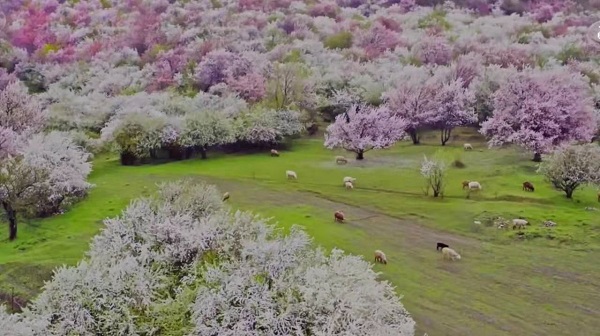 At 4 pm in Xinjiang, apricot flowers are everywhere in the Ili River Valley, forecasting the coming of spring.