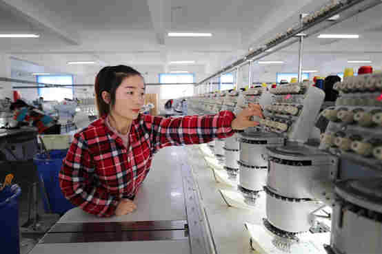 Photo taken on Feb. 20, 2019 shows a migrant laborer works on the production line at a factory in Chengtou town, Ganyu district of Lianyungang city, east China's Jiangsu province. At present, more than 30,000 returned migrant workers in the district have become a new force of local private enterprises after free training. (Photo by Si Wei from People's Daily Online)