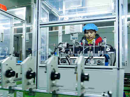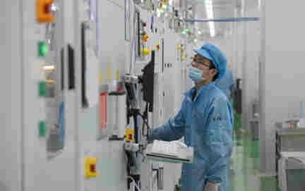 A laborer works at a factory of Huaheng New Energy, a private enterprise specializing in solar cells in east China’s Jiangsu province. The company started production on July 1, 2018. Photo by Sun Jingxian from People's Daily Online