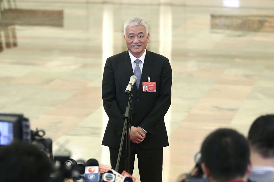 China's Minister of Science and Technology Wang Zhigang receives an interview after the second plenary meeting of the second session of the 13th National People's Congress at the Great Hall of the People in Beijing, capital of China, March 8, 2019. [Photo/Xinhua]