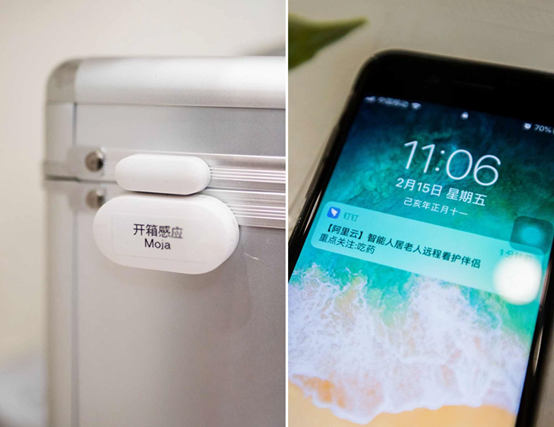 A complete set of remote care solutions customized by Alibaba Cloud IoT engineers enables 24-hour remote care. If the smart medicine box is not opened, the phone will receive a message. Photo by Xu Kangping from People’s Daily Online